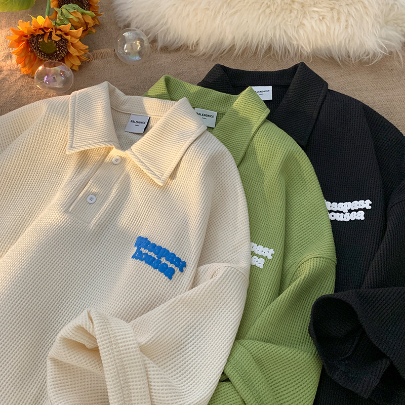 ワッフル半袖tシャツ男性ファッションブランドinsラベル付き襟付きpoloシャツ夏のゆるいトレンド半袖tシャツ
