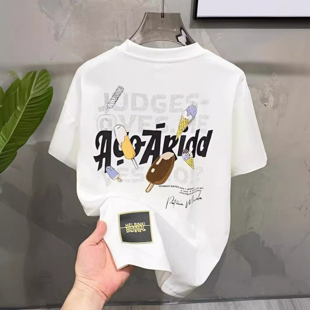 半袖tシャツ男2024夏の新型アメリカ式ファッションカジュアル格好いいプリント丸襟ファッションファッション
