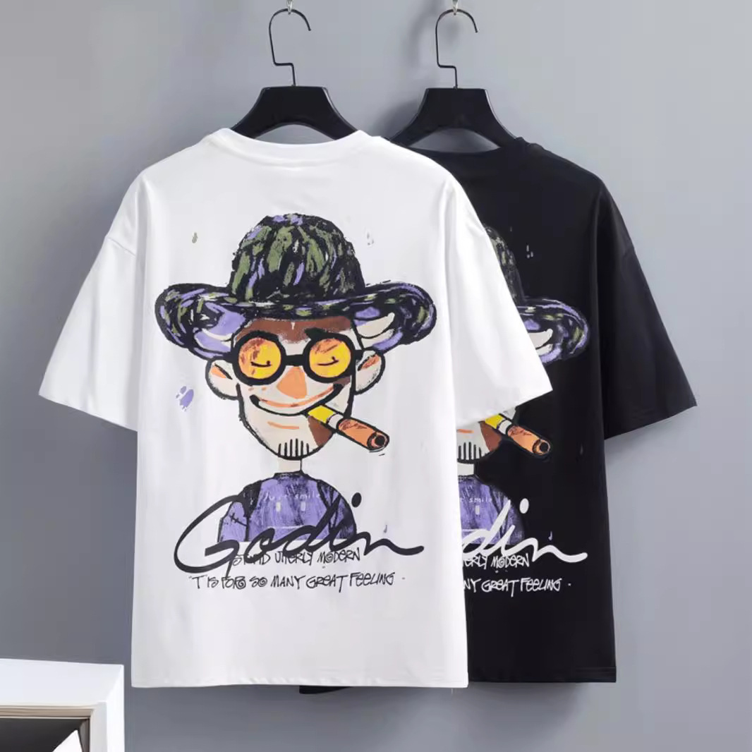 純綿の夏の新型ファッションブランドのプリントtシャツに若者の丸首の上着を合わせてカジュアルでゆったりとした半袖のtシャツを合わせます。
