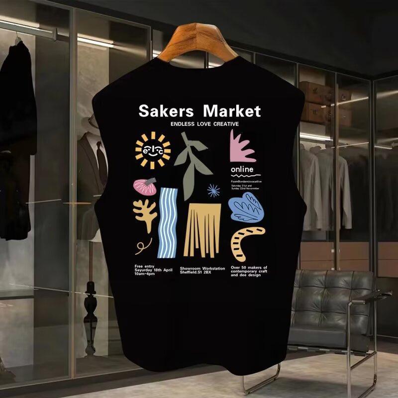 ノースリーブtシャツベスト男性モデル2024新夏純綿insトレンドゆるい丸襟ベストベストファッション