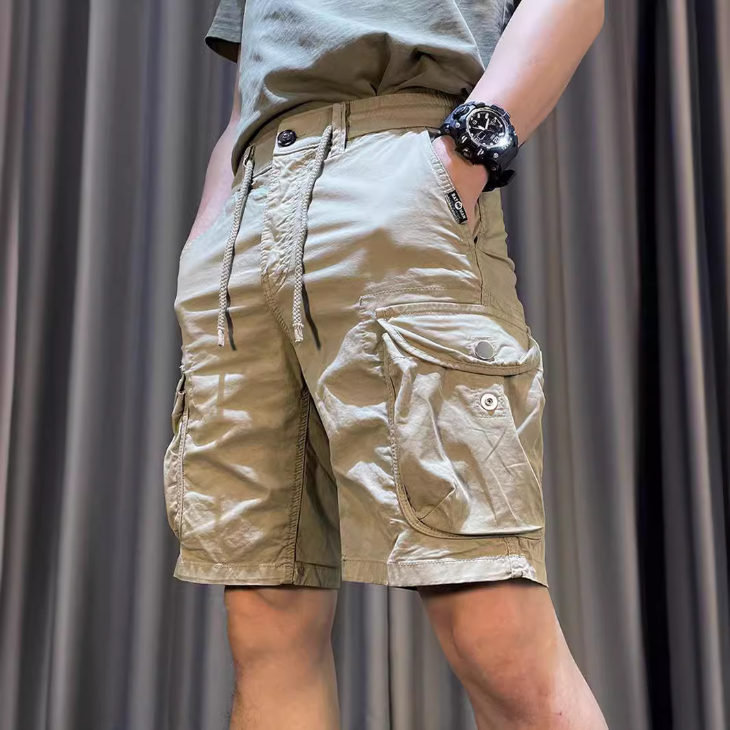 2024新型夏工装パンツ男性カジュアルパンツ多ポケットゆるい弾力綿五分パンツ