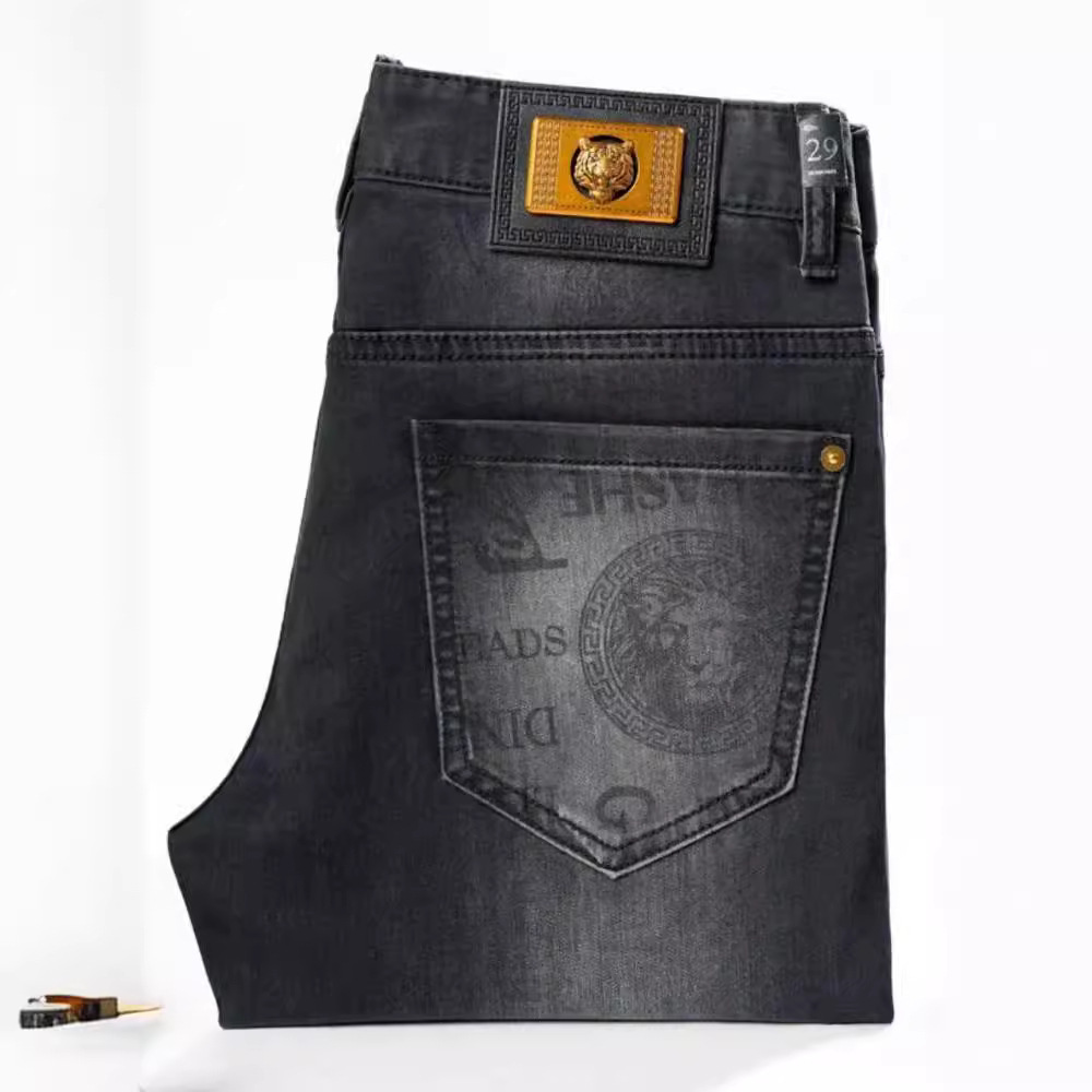 欧米の高級ジーパンの男性の春秋の項の暗い紋様のプリントの弾力は身を修めます小さいストレートの弾力のカジュアルなズボンの潮