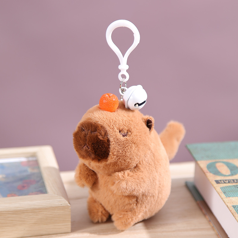カピバラの食べ好きストロベリー人形ぬいぐるみペンダント、尻尾を振るカピバラ