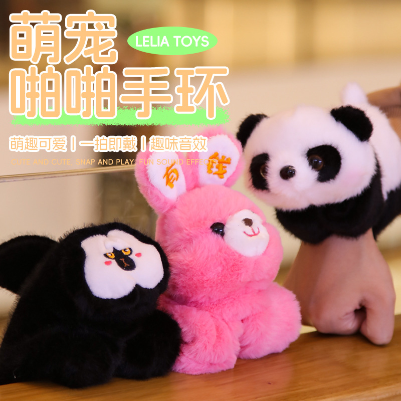 楽吉児のパンダのパチパチとした音声はウサギのぬいぐるみのカピバラのぬいぐるみの手をつないでおもちゃを解凍します。