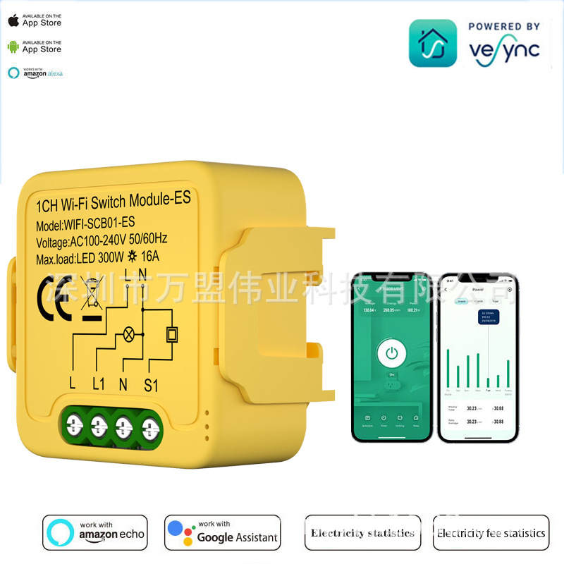 Veync遮断器wifi遮断器16a計電力量課金統計alexa遮断器