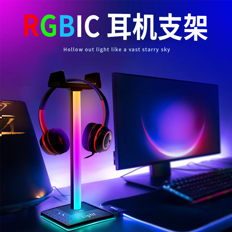 RGB幻彩灯タッチイヤホン展示棚USBデスクトップ雰囲気イルミネーションヘッドフォンホルダーライト