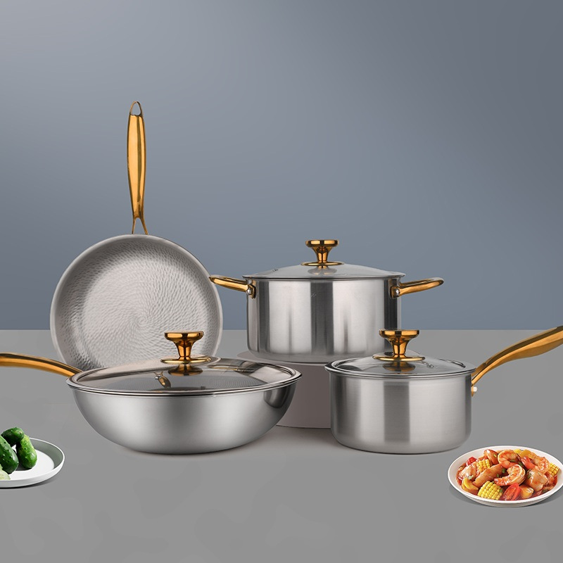 純チタン中華鍋、金メッキ無塗装チタン鍋、ノンスティック鍋、スープ鍋、ミルク鍋、フライパン、フライパン、オールチタン鍋セット