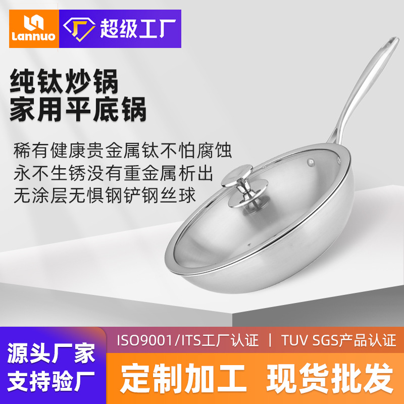 カスタム爆発チタン鍋純チタン炒め鍋家庭用フライパン健康コーティングなし焼き物鍋チタン合金