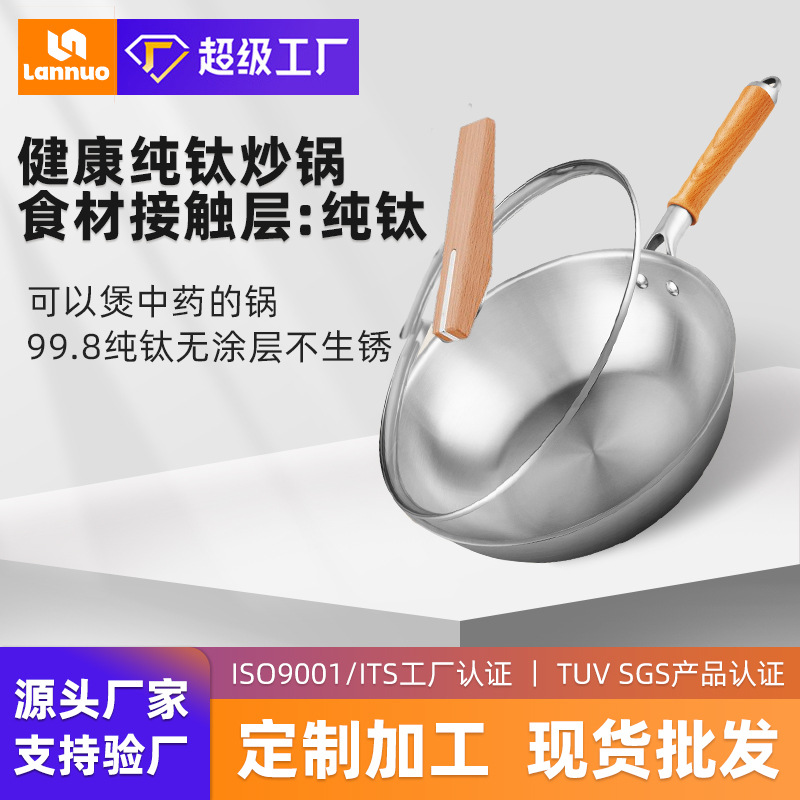 カスタム熱売純チタン炒め鍋家庭用無コーティングチタン炒め鍋健康フライパン純チタン鍋調理器具シチュー鍋プレゼント