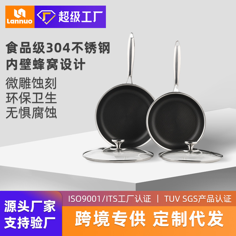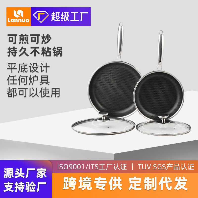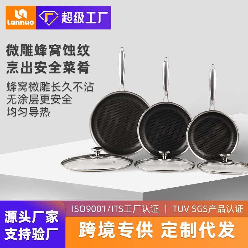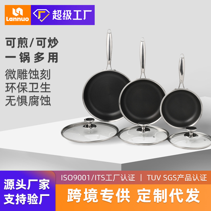 クロスボーダー304ステンレスフライパンハチの巣不粘着フライパンフライパンセットステーキ鍋電磁炉ガス通用