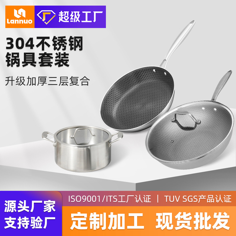 カスタム起爆金304ステンレス鍋セット鍋炒め鍋フライパン三点セット調理器具プレゼントセット