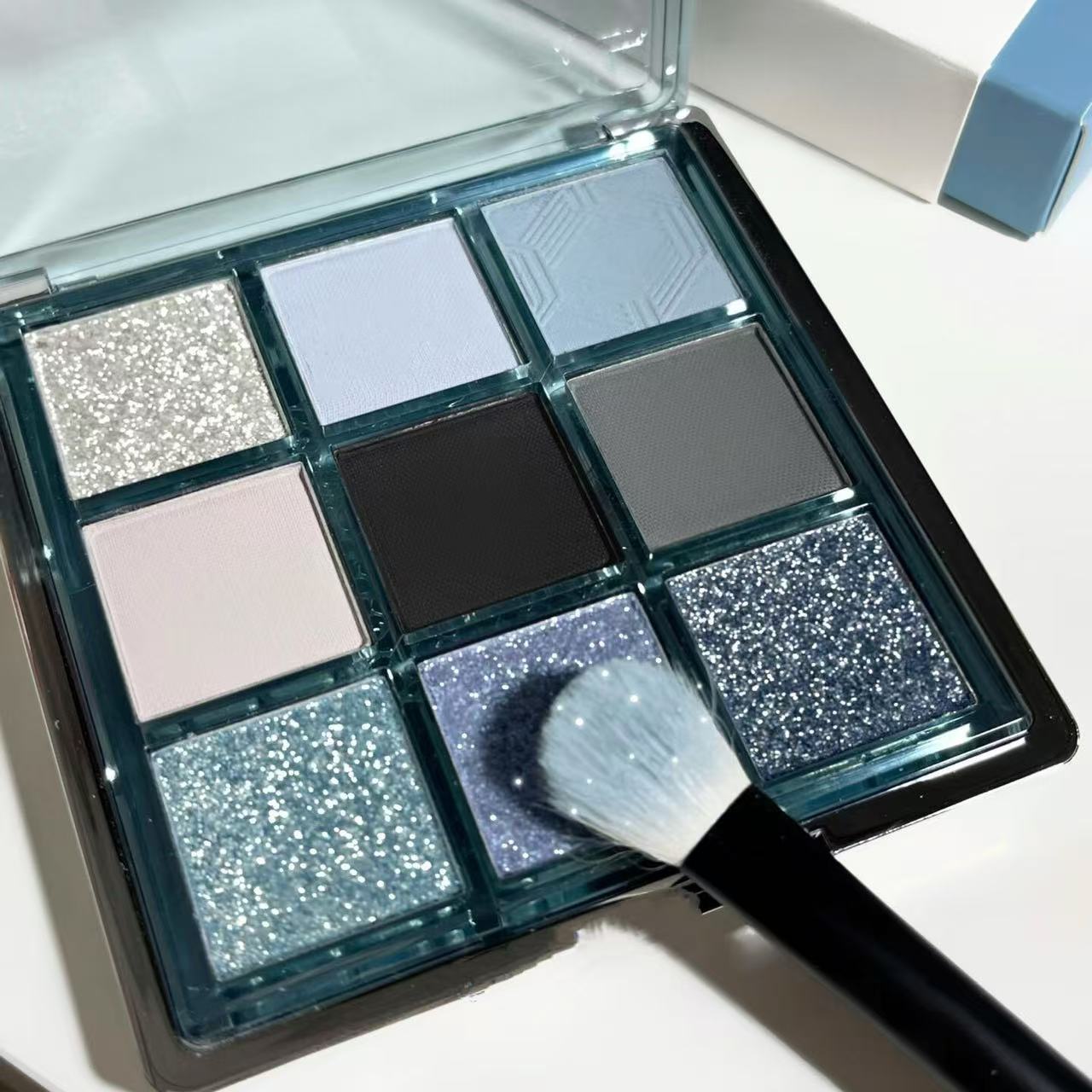 MUGELEEN低飽和氷透青スモークアイシャドー盤マットビーズ多機能九色アイシャドー