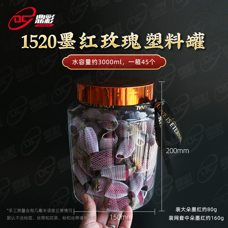 1688新しいバラ茶食品級petボトルに塗装金蓋100グラム墨赤薔薇プラスチック缶を配合した