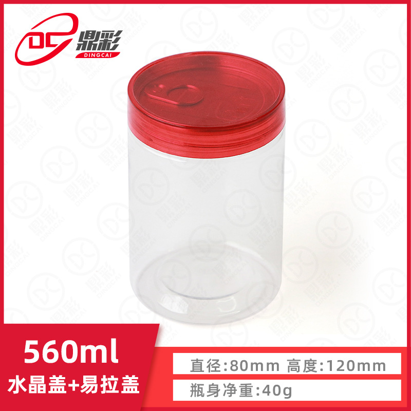 1688560ml赤いクリスタルスパイラル缶80mm直径食品プラスチックボトルpet透明缶プラスチック食品缶