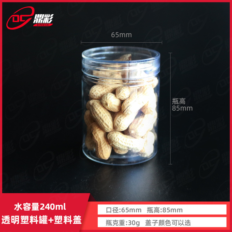 240ml透明プラスチックボトルギフト包装缶pet食品グレード密封缶ナッツプラスチック缶円形プラスチックボックス