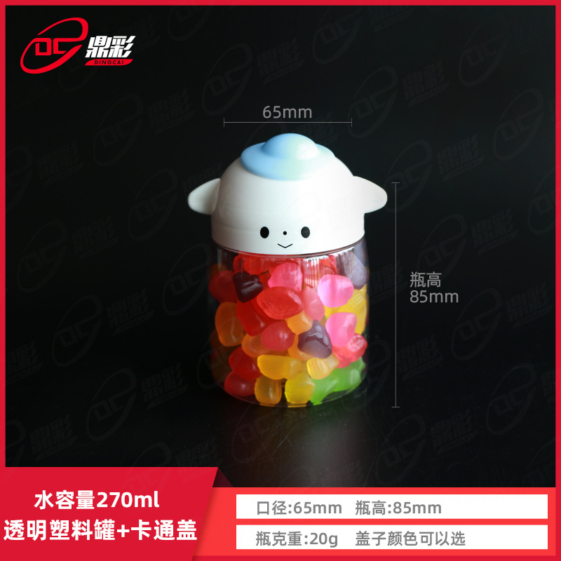 300ml卸売マシュマロビスケットプラスチック缶シール缶透明petプラスチック漫画キャンディー食品包装缶