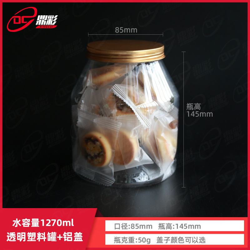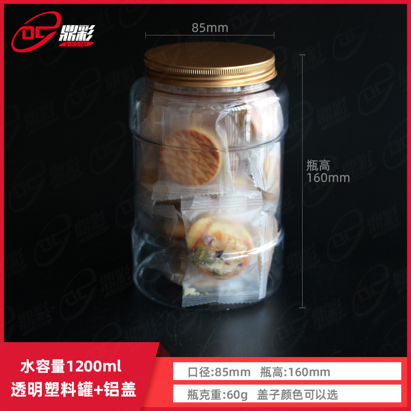 1200mlアルミカバー食品包装プラスチック缶pet透明プラスチック缶スナックキャンディー缶ドライフルーツシール缶