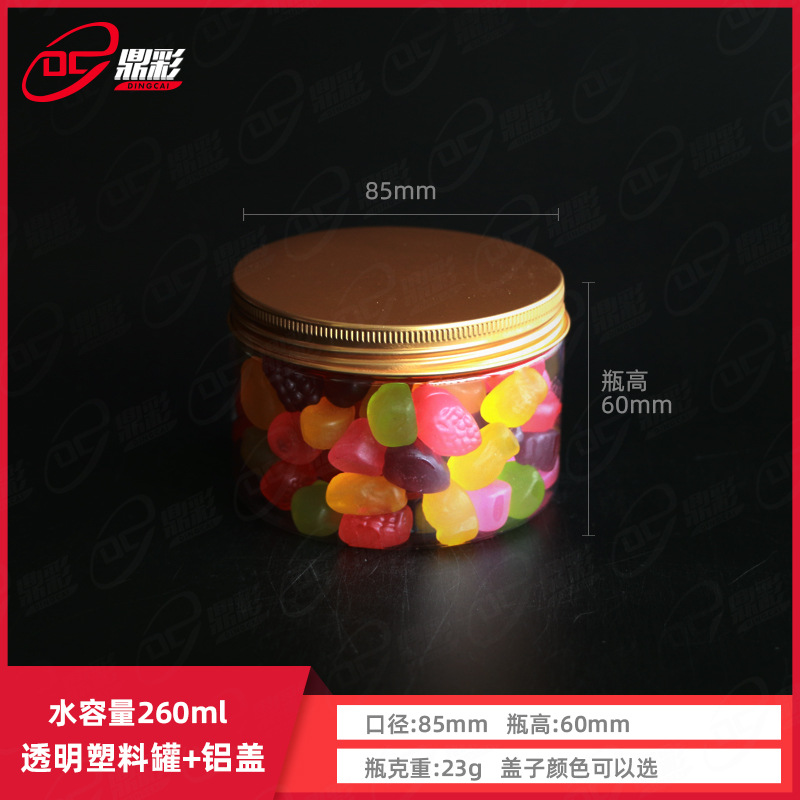 260mlアルミカバー食品包装プラスチック缶pet透明プラスチック缶スナックキャンディー缶ドライフルーツシール缶