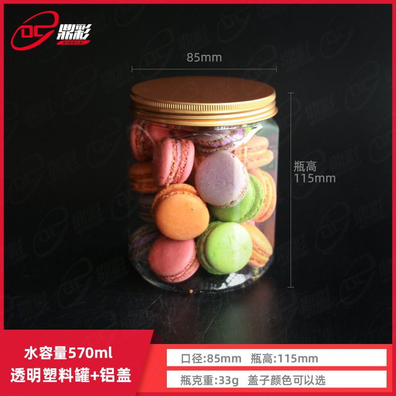 570ml円形食品包装缶petアルミキャップ密封缶透明プラスチックボトル収納瓶プラスチック食品缶