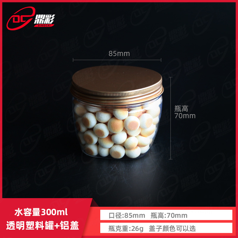 300mlクッキー缶スナック瓶小マントー赤ちゃんスナック缶フルーツ瓶透明アルミ蓋瓶異形ナッツ瓶