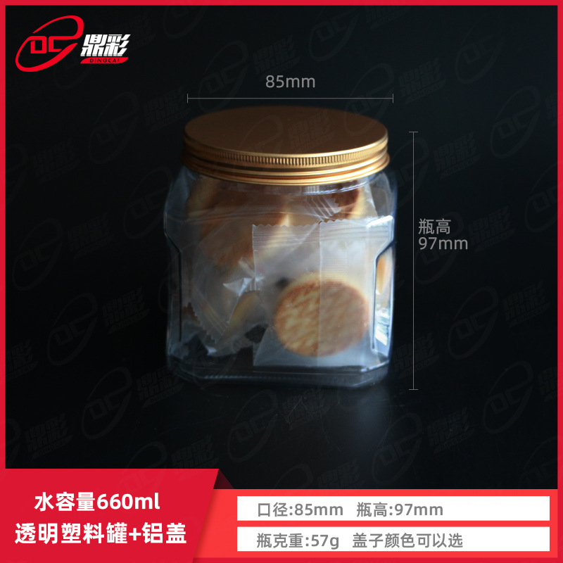 650ml petプラスチック異形缶食品缶透明食品瓶方形缶食品級貯蔵缶