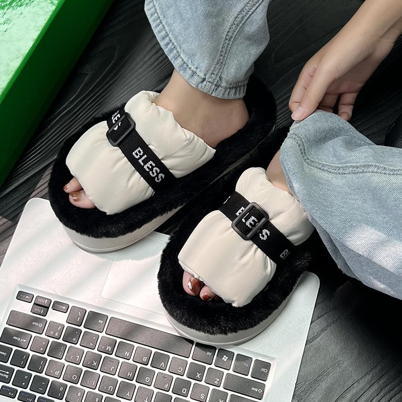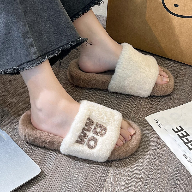 アリの恋秋冬の新商品ファッション純色の厚い底は女性の家庭の毛のスリッパを着ることができます。