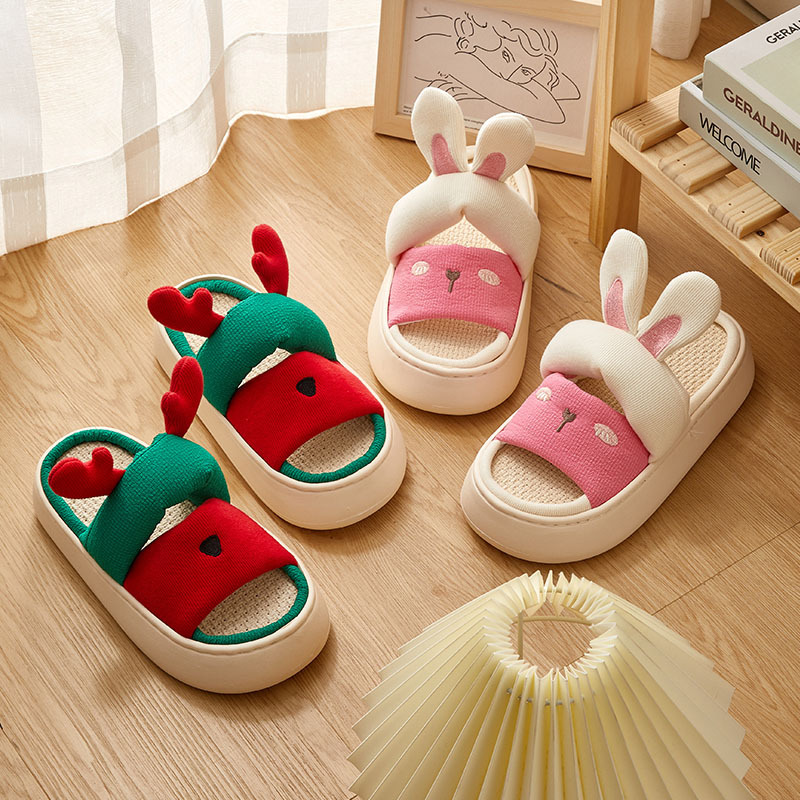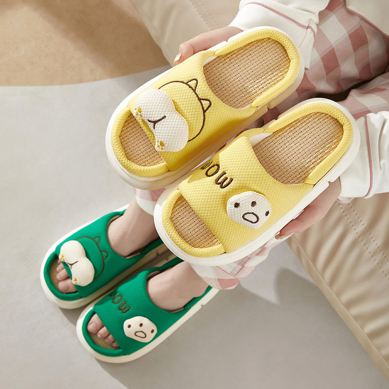 春夏のカップルの四季の麻は床のスリッパの潮流を引っ張ります。