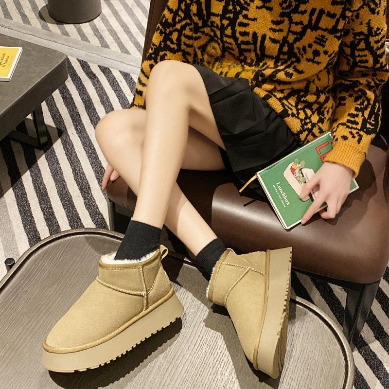 アリの恋冬の新商品韓国版シンプルな純色保温厚い底雪地靴松餅の外に女性綿靴を履いています。