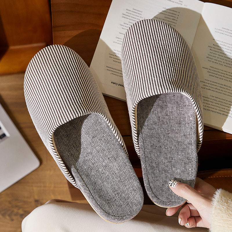 麻スリッパ10c03春秋スリッパ日系カップル亜麻スリッパ家庭包頭快適無声家庭スリッパ