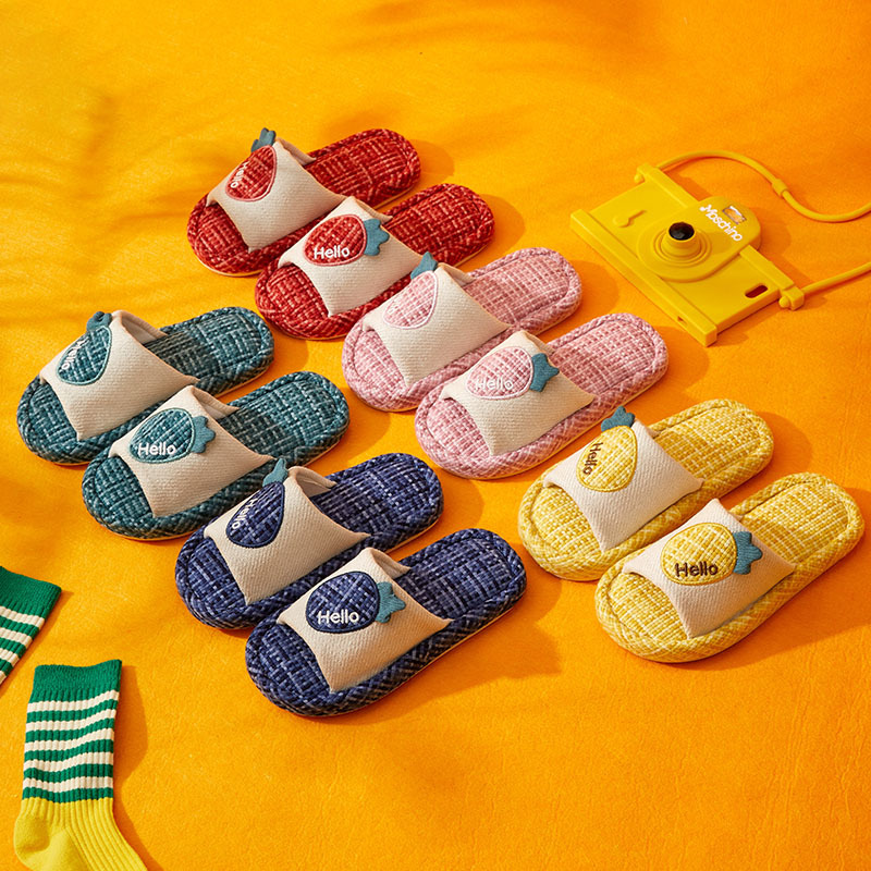 亜麻スリッパ9864男女春夏かわいい大頭大根子供家四季麻引き床スリッパ