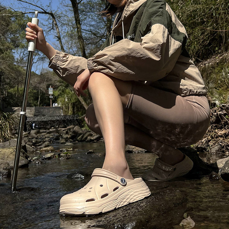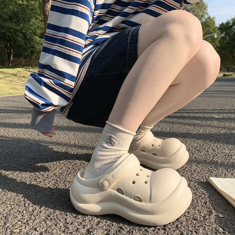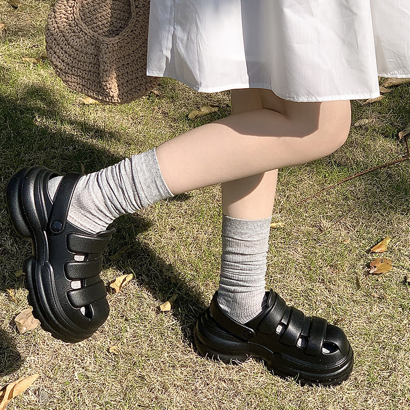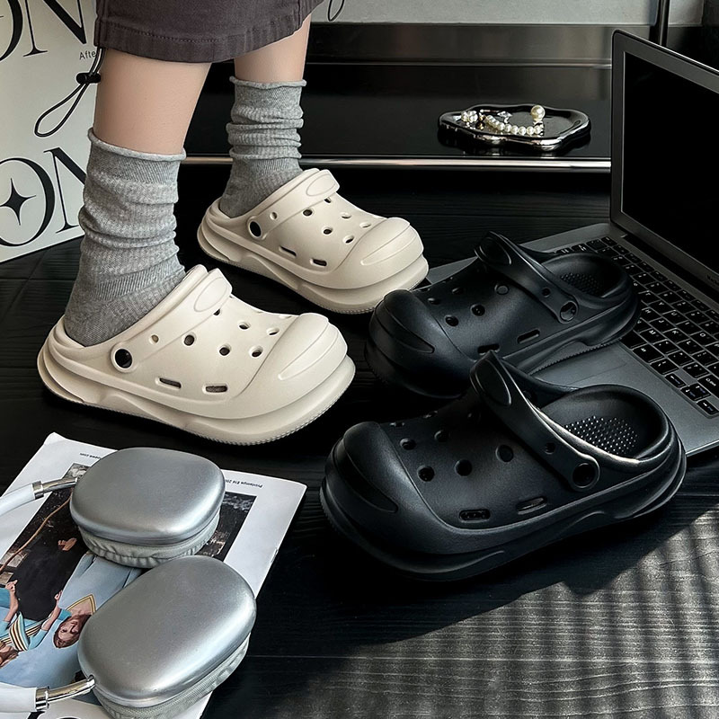 アリの恋春夏の新商品はシンプルで純色のファッションの大きい頭の女性の外は厚い底の穴の靴の包頭を着て快適です。