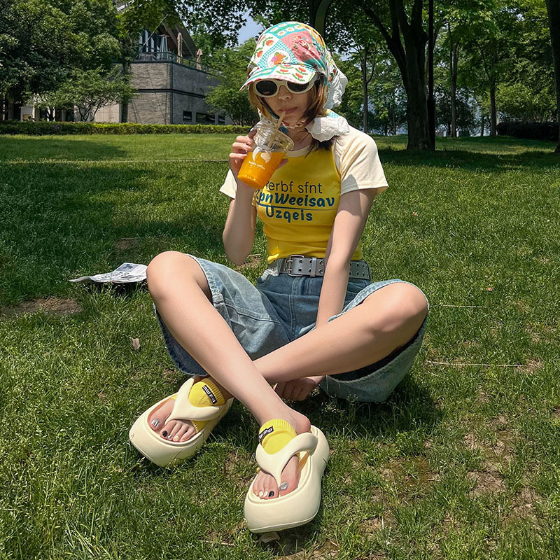 アリの恋春夏新品ファッションシンプル純色女性の家の外に人の字を着て厚い底の快適な卸売りをします。