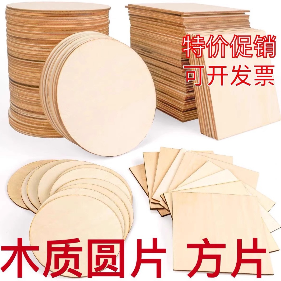 厚さ5mmのDIY手作り丸木片、正方形木片、クリエイティブな手描き木板、パイログラフィア、ポプラ丸木、薄い木板