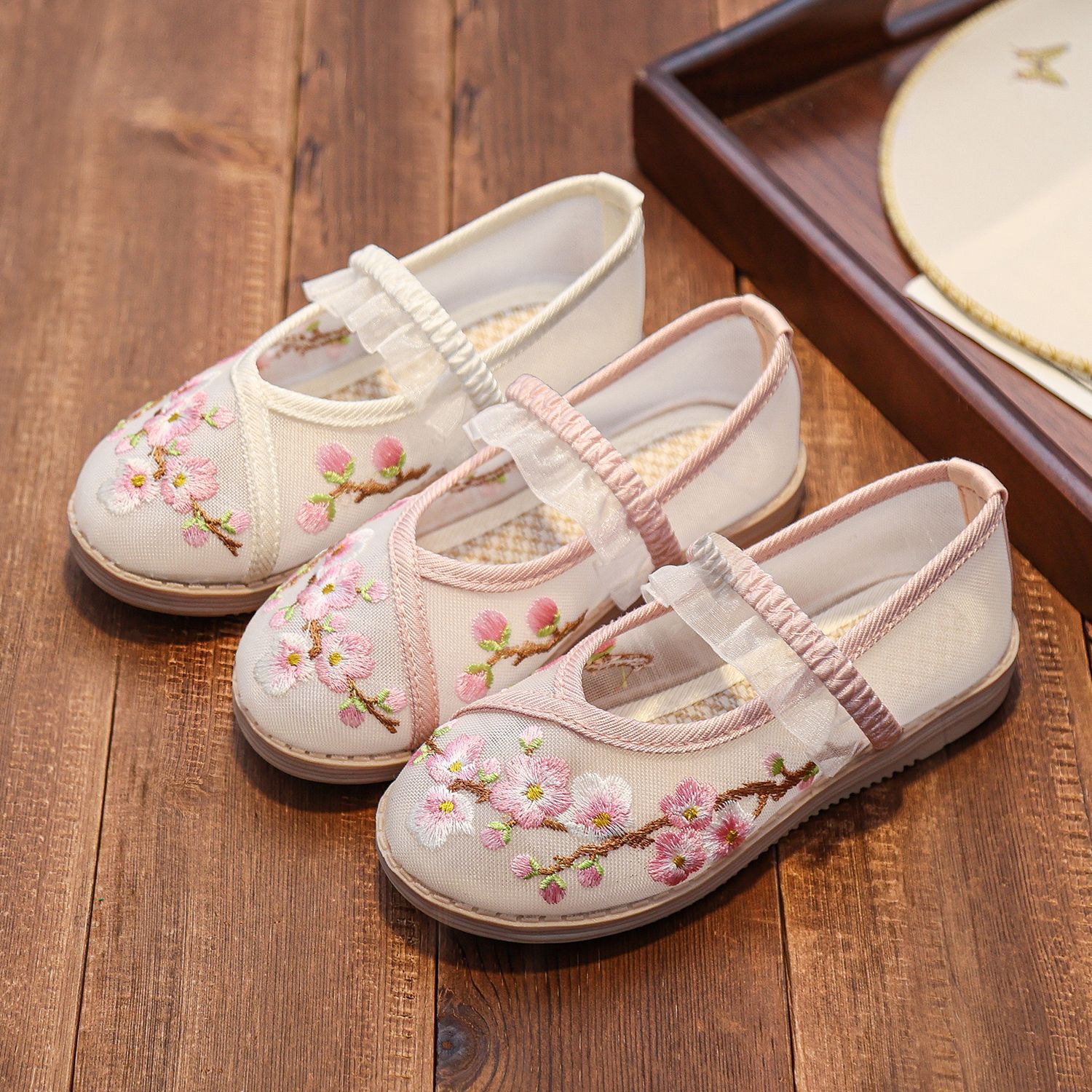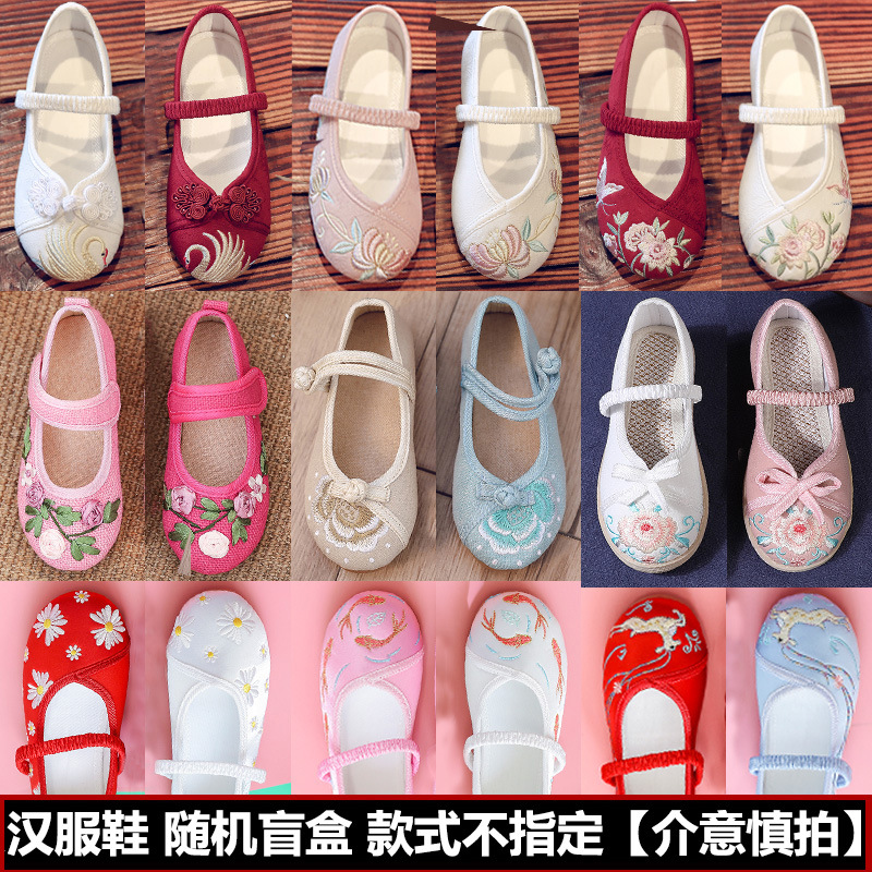 女の子用漢服靴 夏用 中国風 古装 子供用刺繍靴 老北京布靴 古風シングルシューズ 在庫処分セール