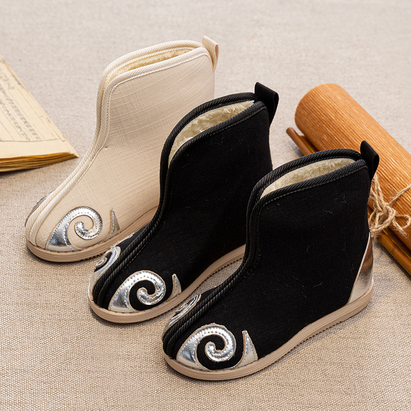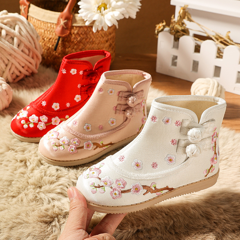 少女漢服靴古風刺繍靴赤ちゃん手作り綿靴子供布靴民族国風ブーツ秋冬