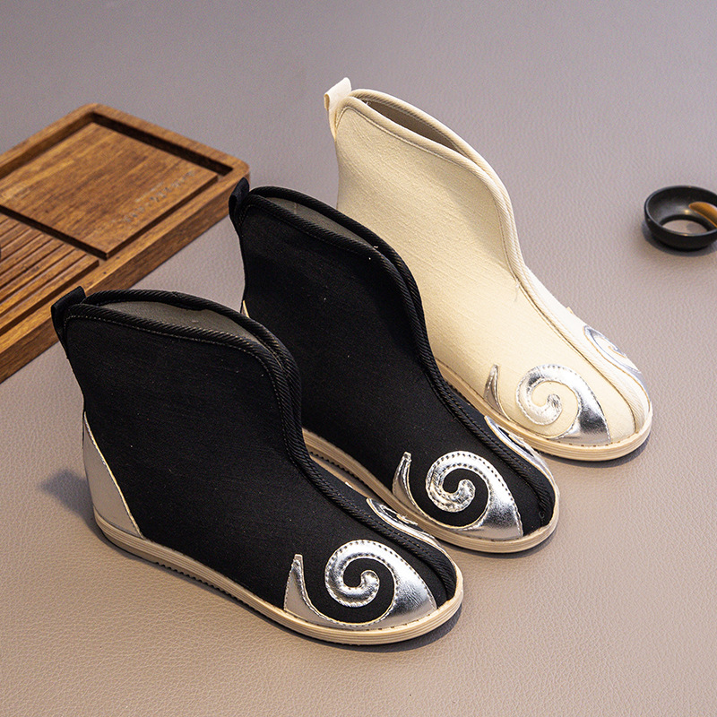 男児漢服靴老北京児童布靴中国風秋冬ブーツ古風刺繍靴演出黒布靴