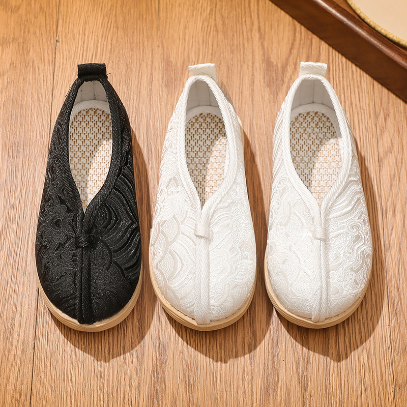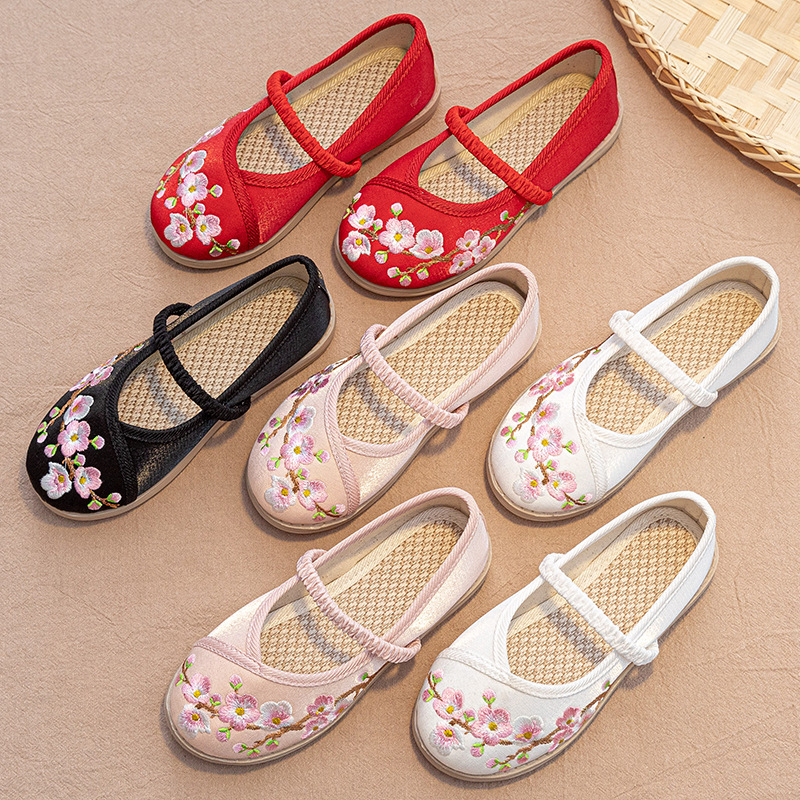 漢服の靴の女性の古風の刺繍の靴の民族の風の時代の丸い頭の復古のチャイナドレスの靴の唐製の平底の古い北京の布の靴