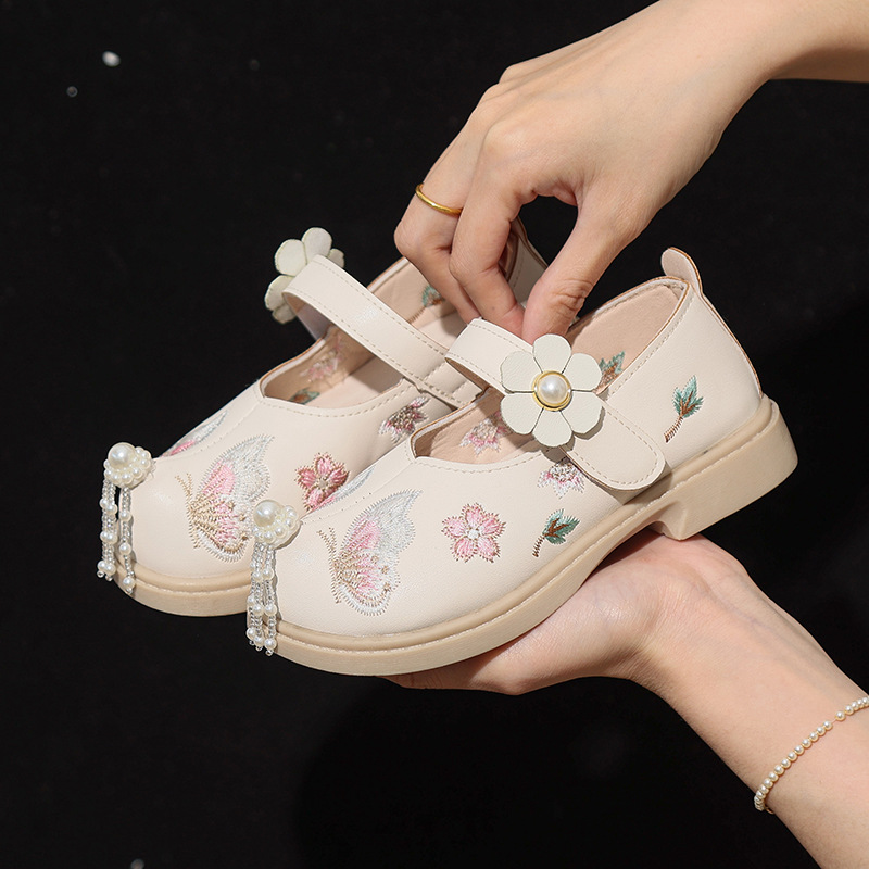 女の子の漢服の靴、古代衣装の子供用刺繍靴、民族風の古代スタイルの女の子の唐装、女の子のプリンセスの小さな革靴、刺繍
