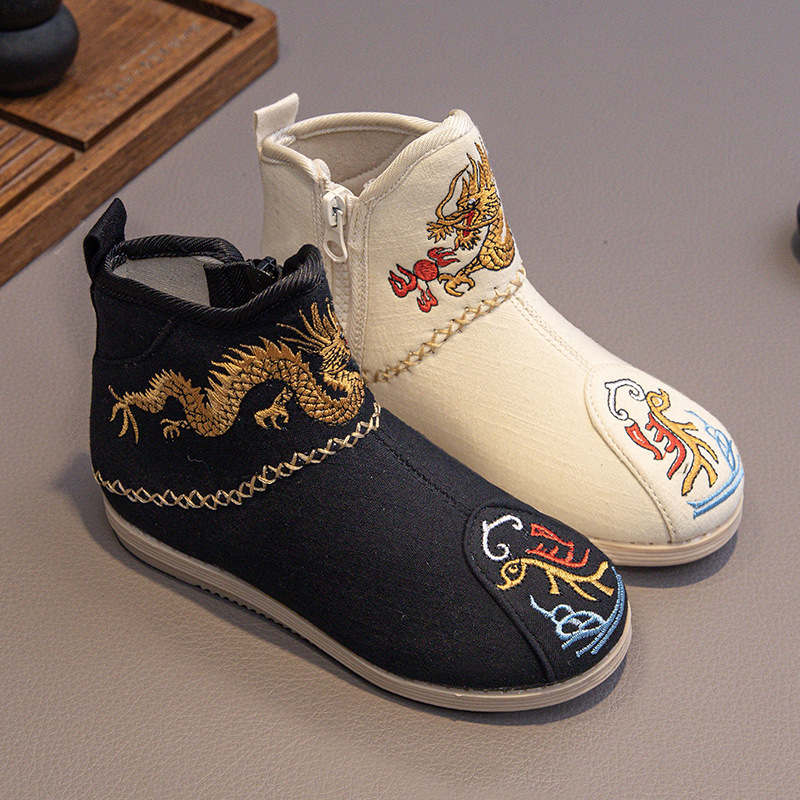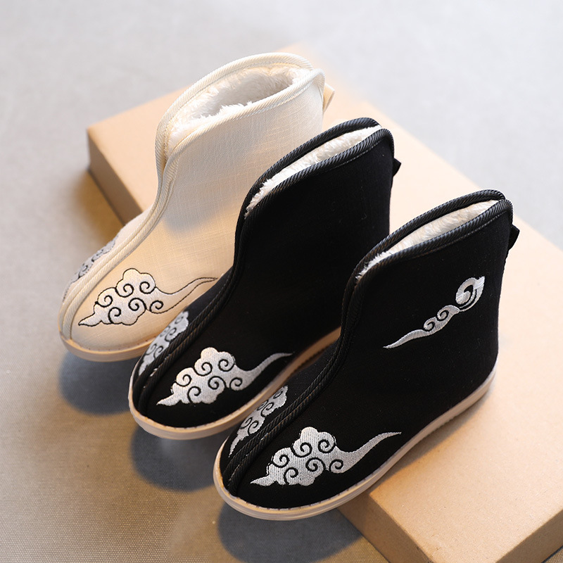 古い北京手作り布靴男児漢服靴古風ブーツ子供刺繍靴中国風古着冬綿靴