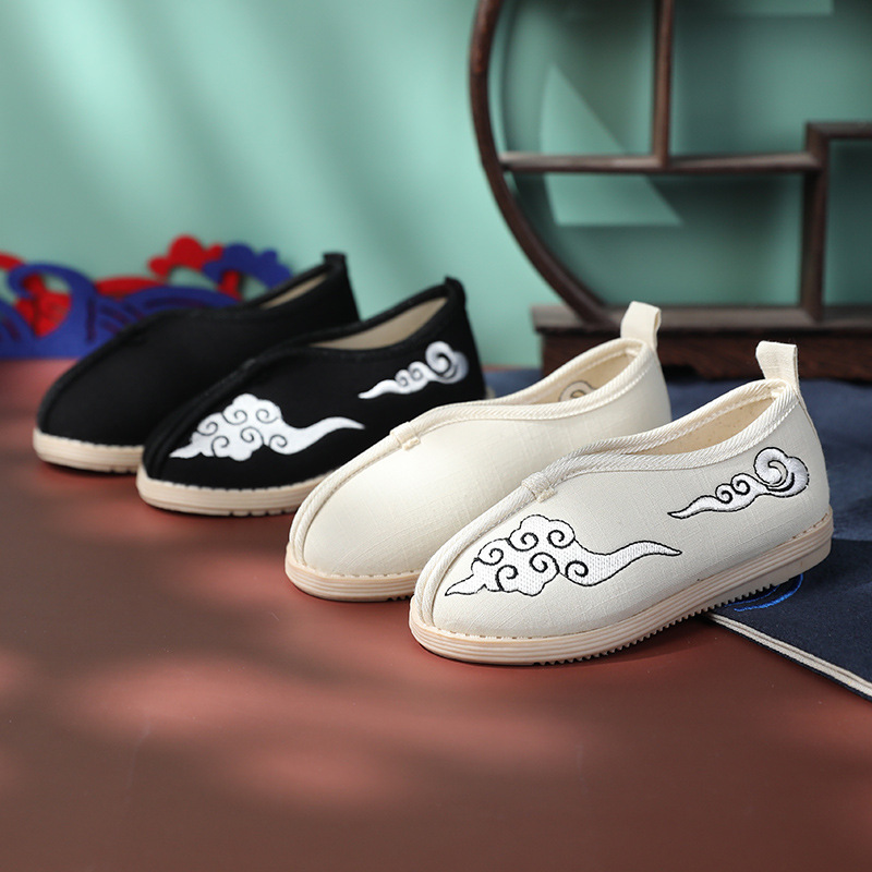 古い北京の手作りの布靴の古風な男の子の漢服の靴の民族の国風の時代の子供の刺繍の靴の馬のスカートの靴