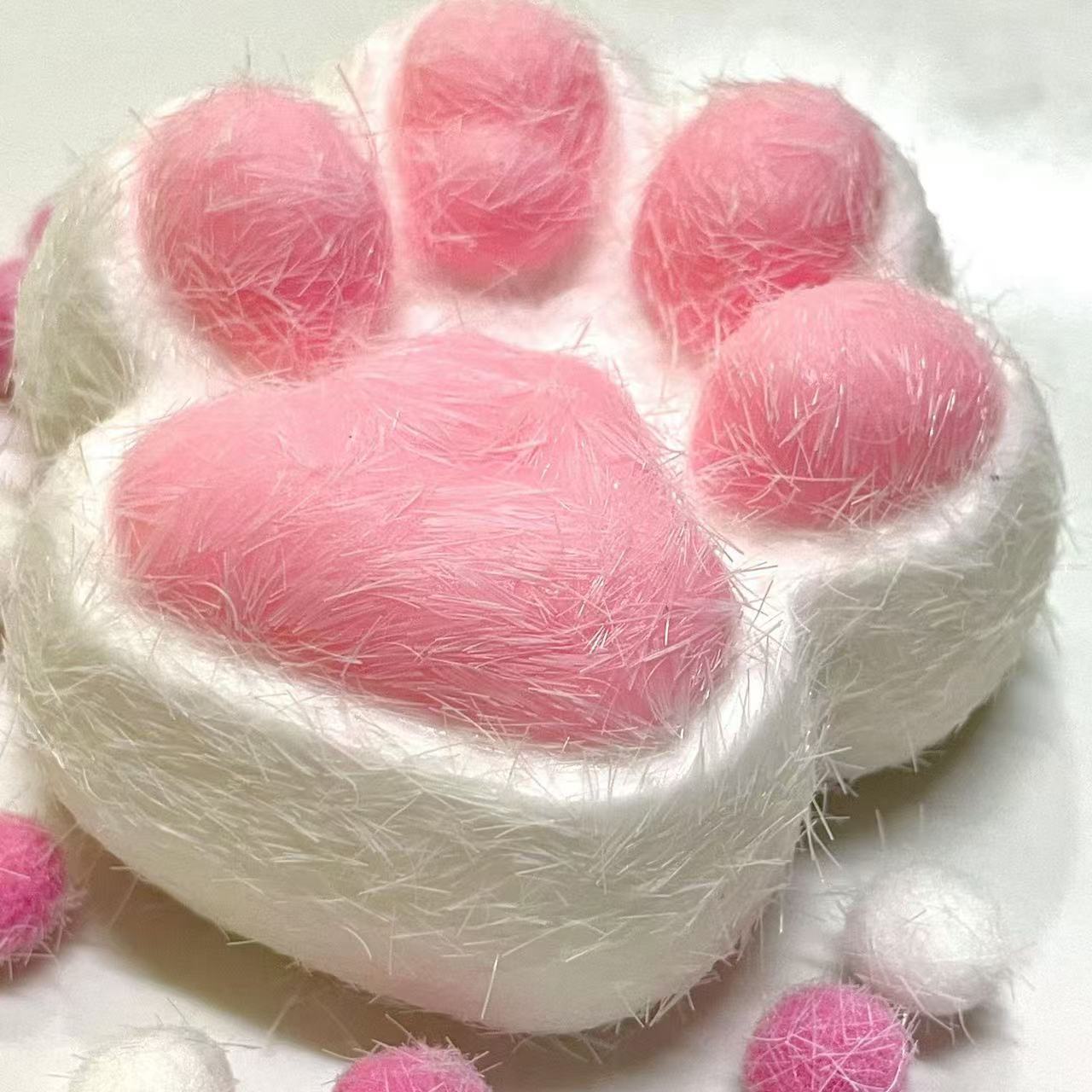 つまんで楽しいぬいぐるみの植毛猫の爪をつまんで解凍します。