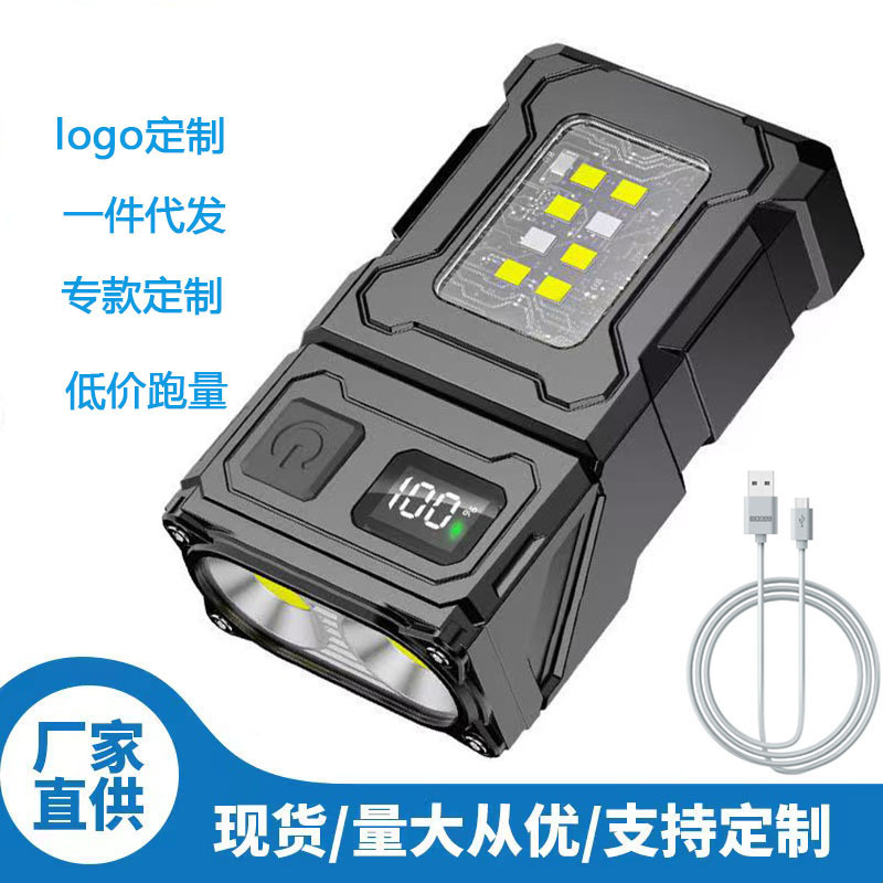 クロスボーダーキーホルダーライト Type-C 充電屋外高輝度小型鋼砲ナイトライトデュアル光源強力なライトミニ懐中電灯