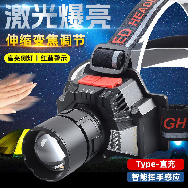白色レーザー LED ヘッドライト超高輝度充電式ヘッドマウント強力な光センサー超高輝度懐中電灯小型ポータブル夜釣りライト