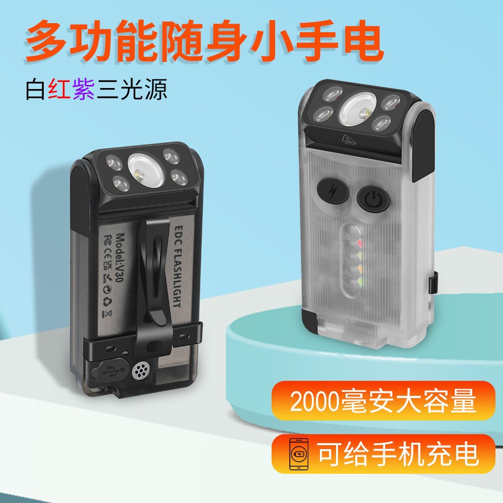 新しい V20 多機能 EDC 懐中電灯 180 度調整ブザー抗オオカミ装置ポータブルライト長寿命懐中電灯