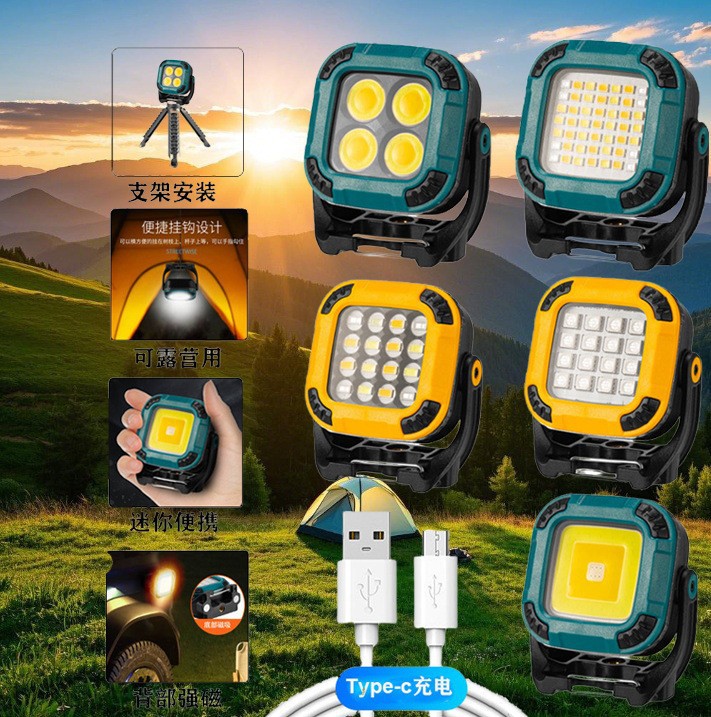 国境を越えた新しい COB ワークライト磁気検査ライト USB 充電屋外キャンプマルチ光源 LED キャンプライト