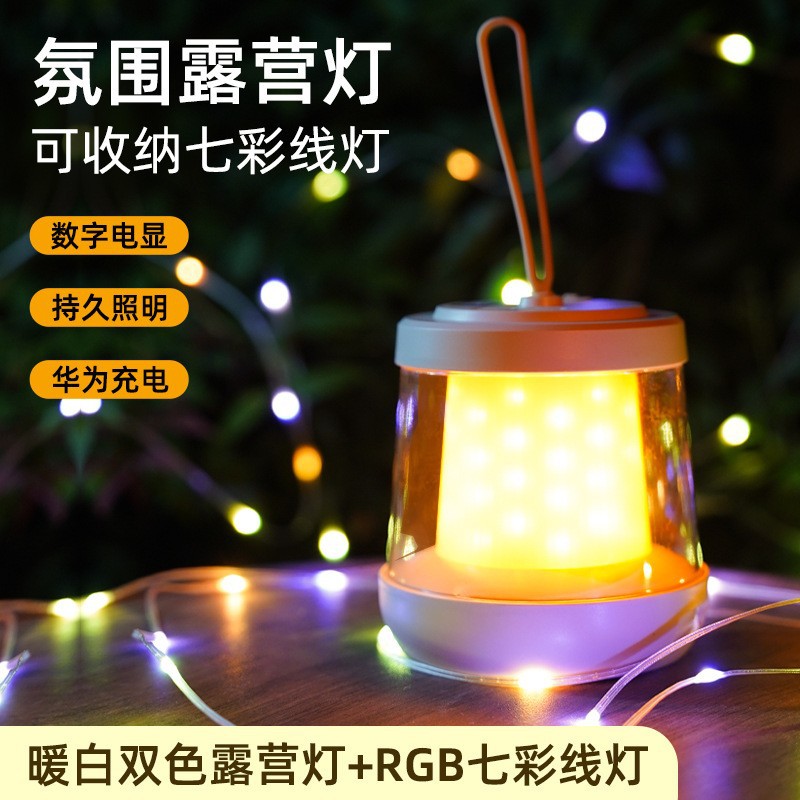 国境を越えた新しいキャンプランプ、屋外ポータブル雰囲気ランプ、多機能テント収納ライトストリング、防水キャンプ巻尺ランプ