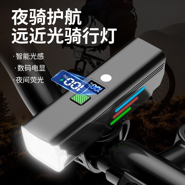 新型充電可能な側面警告騎行灯デジタル表示自転車灯正装吊り一体ハイライトヘッドライト