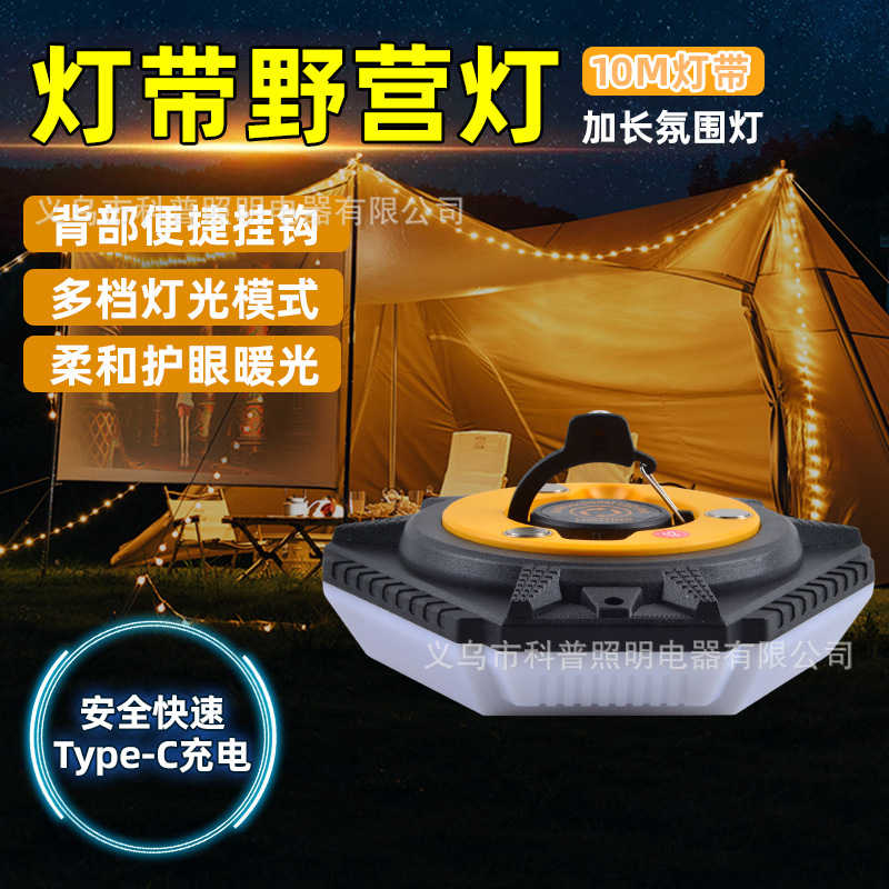 クロスボーダー10メートル雰囲気LEDキャンプライトUSB充電キャンプテントカラフルストリングライト付き巻き尺収納キャンプ