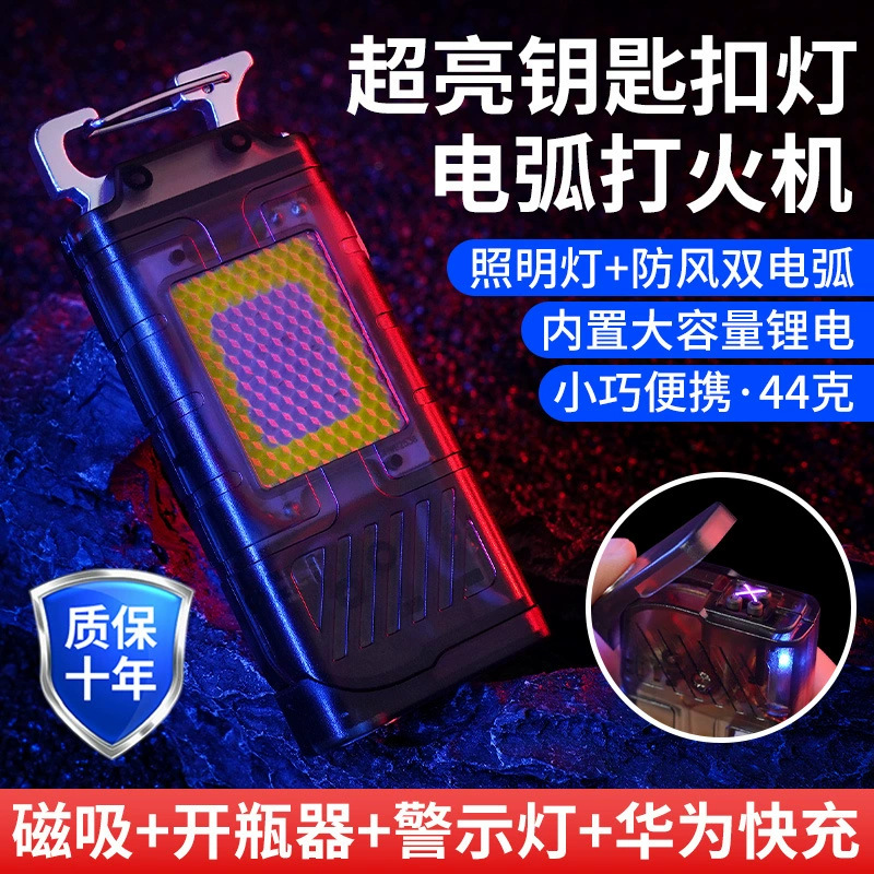 新型携帯キーホルダーライト磁気吸熱線ライターUSB充電警告灯照明懐中電灯シガレットライター