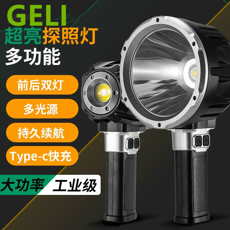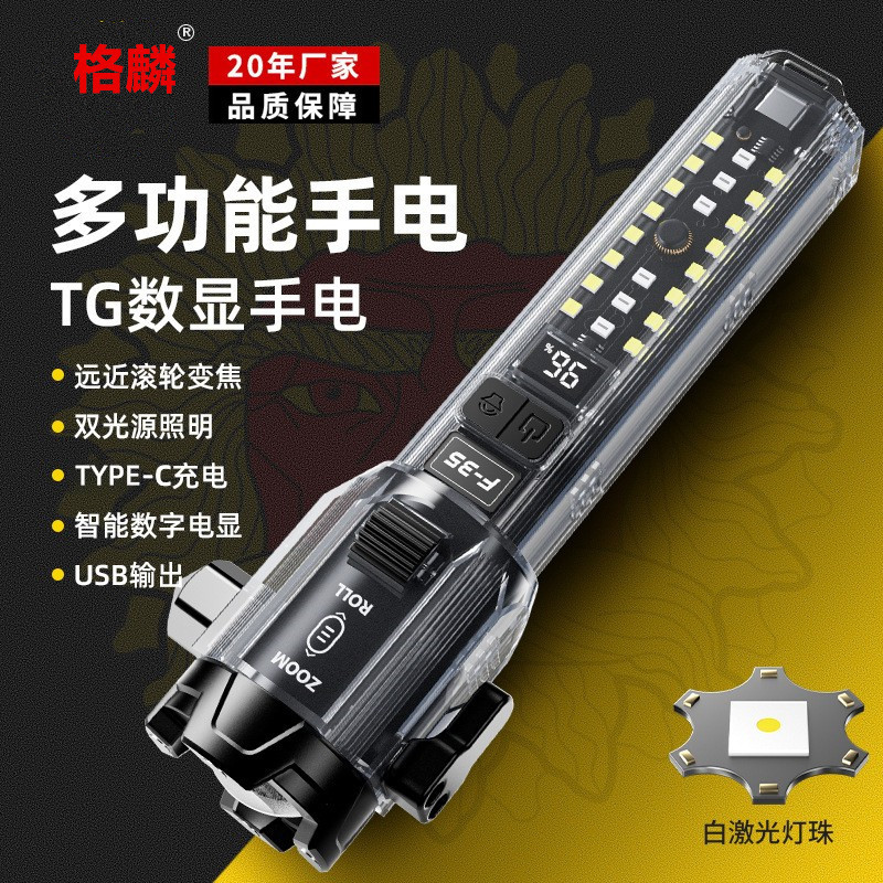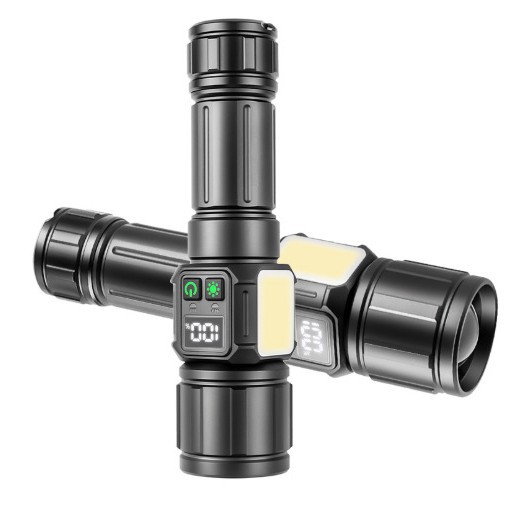 クロスボーダー新型LED強光USB充電強光固定焦点遠射屋外懐中電灯電気量表示家庭用懐中電灯